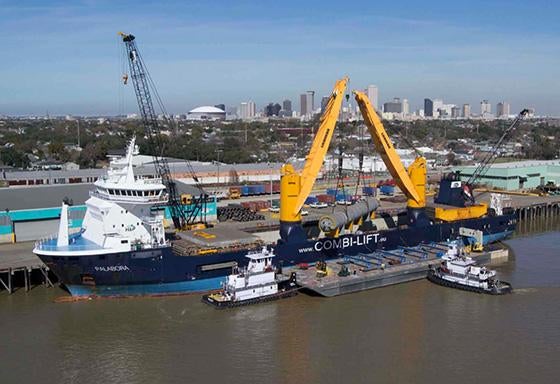 On January 12th, the plant's 815-metric-ton ammonia converter, designed by KBR, arrived in the Port of New Orleans from India. The journey from ship to jobsite was multi-faceted and required precise logistics, several modes of transport and the assistance of the Louisiana State Police. The ship-to-barge lift was the heaviest project cargo lift in the port's long history. The converter was rolled off the barge at a secure area along the Mississippi River, staged and then transported 25 miles to the jobsite by special Goldhofer trailers.
